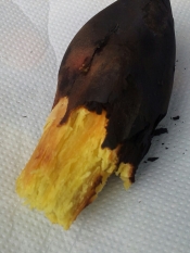 キャンプでさつまいも キッチンペーパーで美味しい焼き芋の出来上がり kutikomi